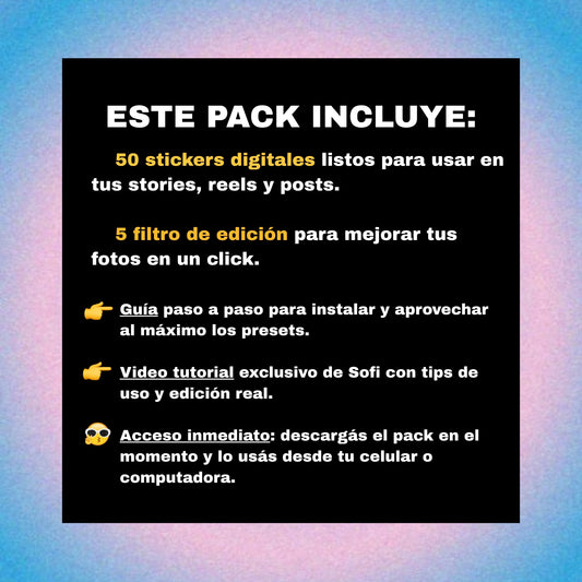 Vas a recibir un archivo con los presets + una guía paso a paso para instalarlos y usarlos.