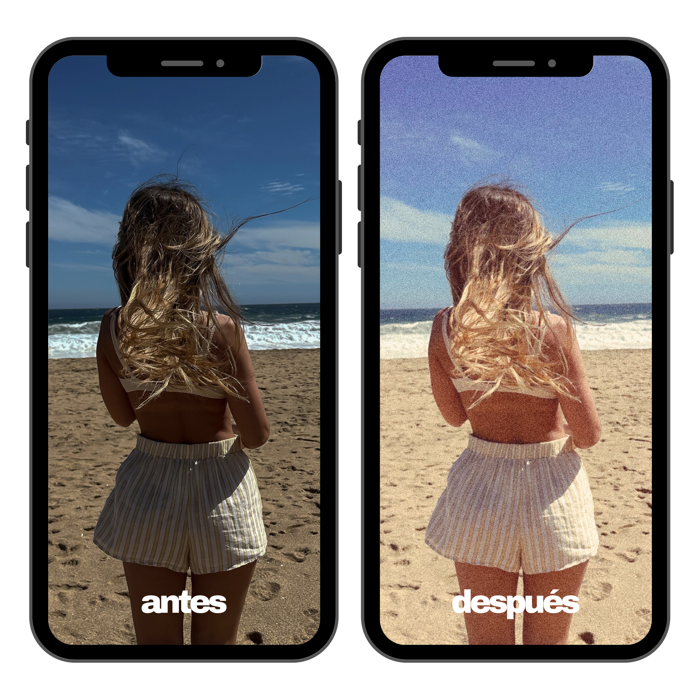 Aporta grano sutil y una estética natural que funciona perfecto en fotos de personas, productos y naturaleza, inspirada en el feed de @juanapv.