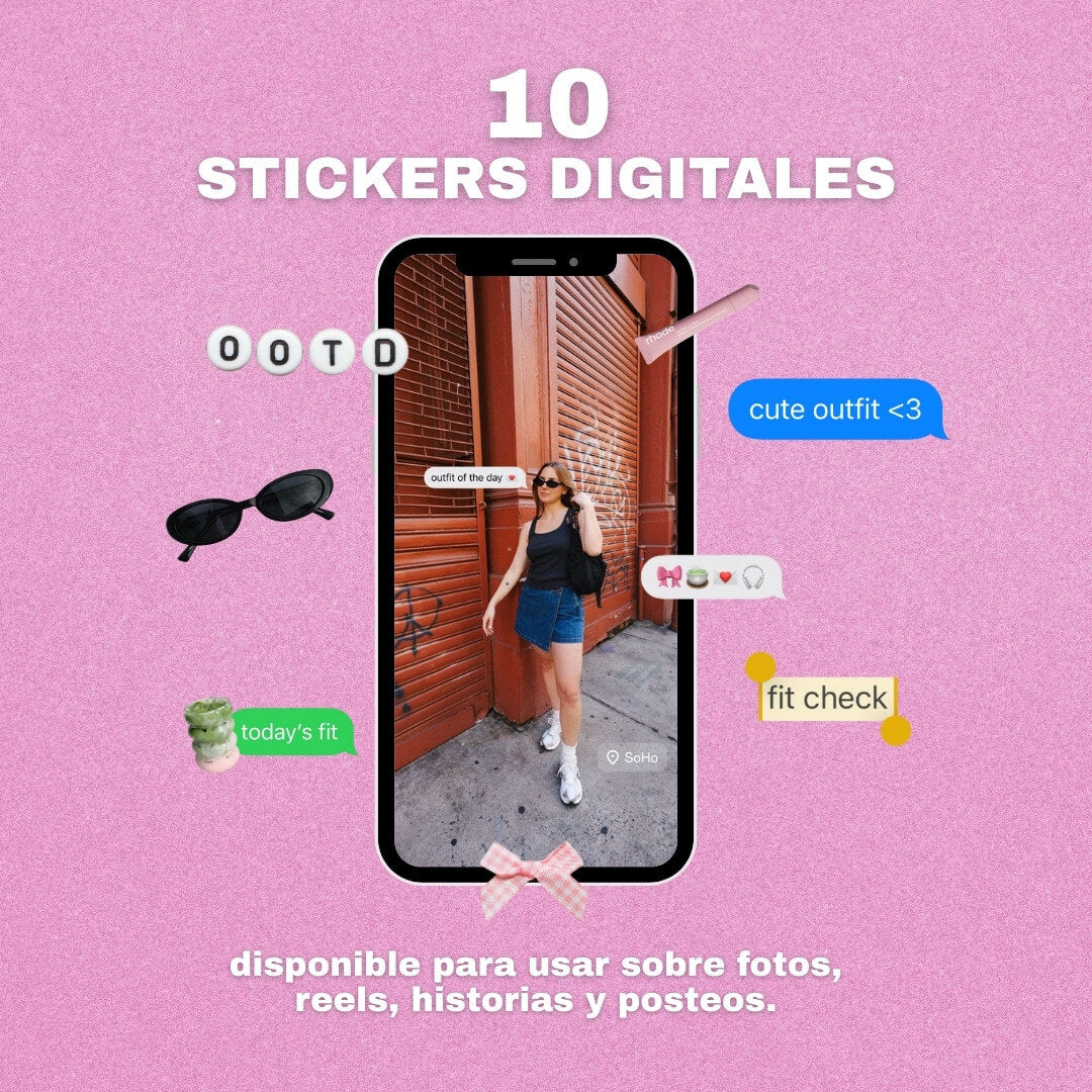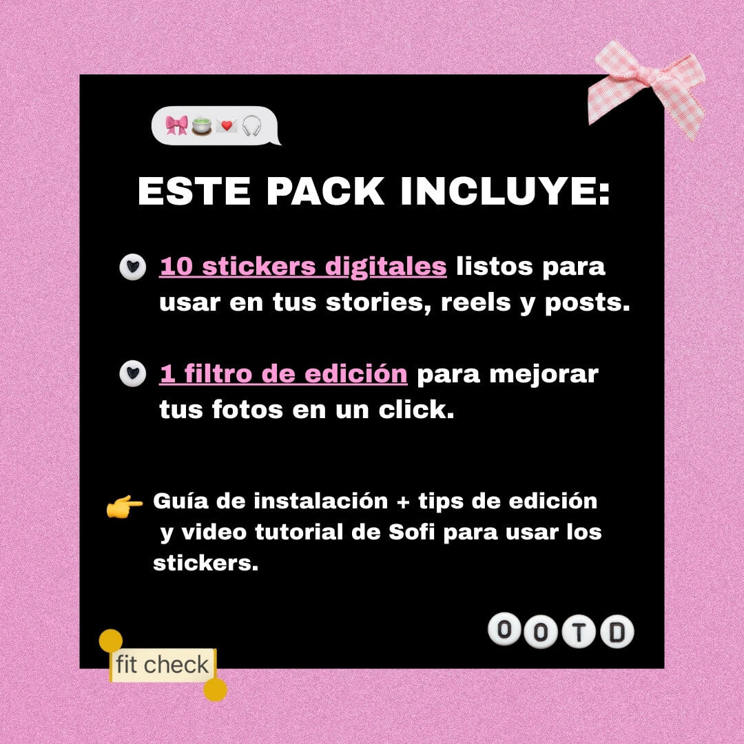 Son stickers en formato PNG que podés agregar fácilmente sobre fotos, videos e historias de Instagram, usando apps como Canva o Instagram.